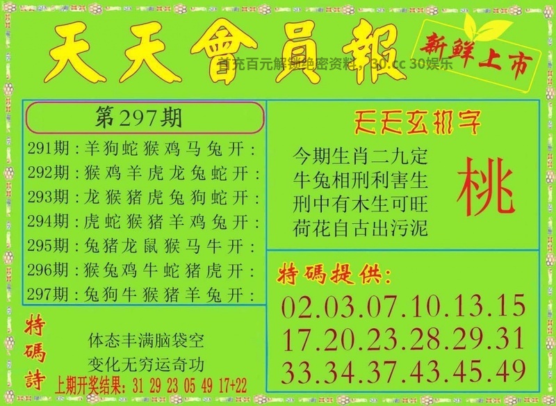 | 297期平特 | 金猪报喜 | 开:猪19 |