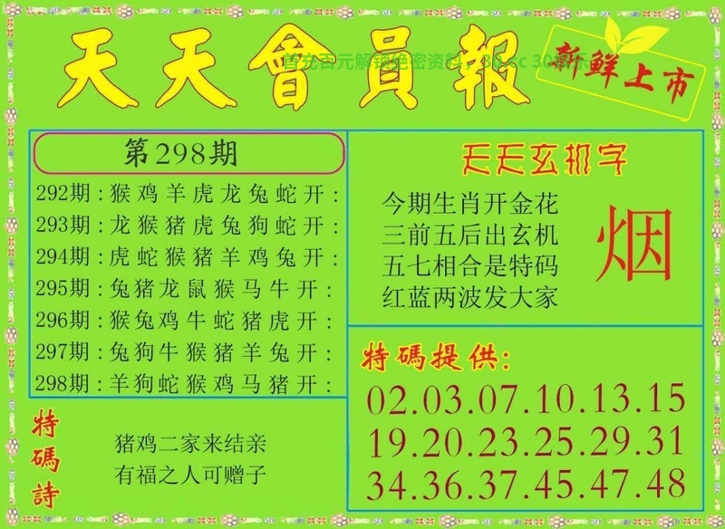 | 298期四肖 | 蛇鸡鼠羊 | 开:羊23 |